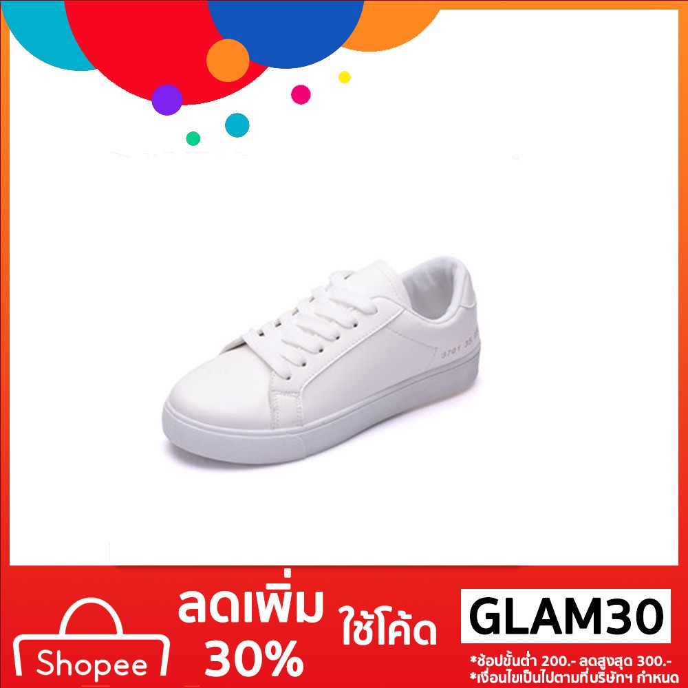 รองเท้า ผ้าใบ พื้นทรงเตี้ย ลำลอง สำหรับผู้หญิง สี ขาว ชุดคนอ้วน แซก