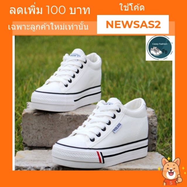 รองเท้า ผ้าใบเสริมส้น สไตส์เกาหลี มี3สี ชุดคนอ้วน นำเข้า รีวิว Secen-Style SS-112 ----