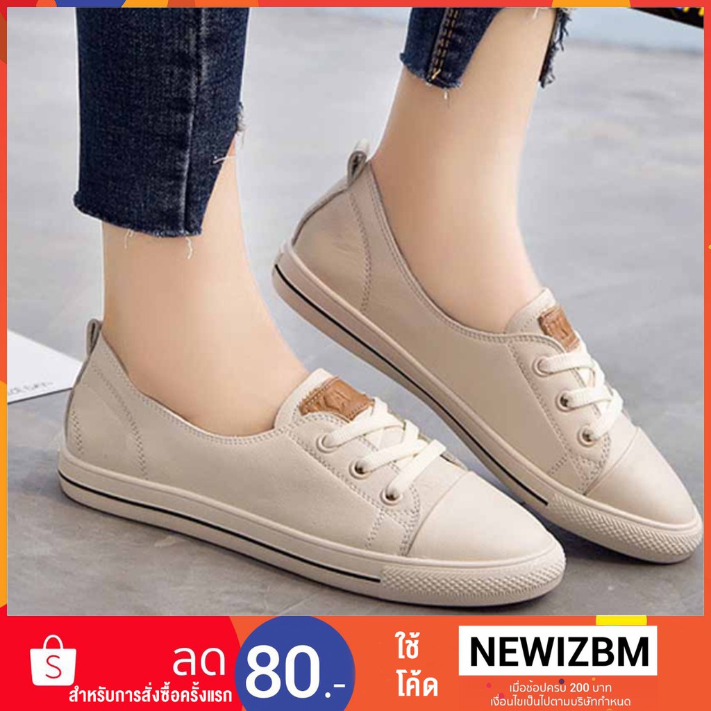 รองเท้าแฟชั่น รองเท้าทรง ผ้าใบ หนังแท้ รองเท้าผู้หญิง รองเท้า MOLISA 100% Leather-flat shoes #1710