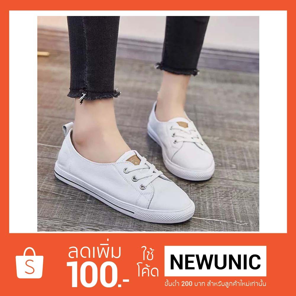 NEW!!รองเท้าแฟชั่น รองเท้าทรง ผ้าใบ หนังแท้ 100% Leather-flat shoes-#1710