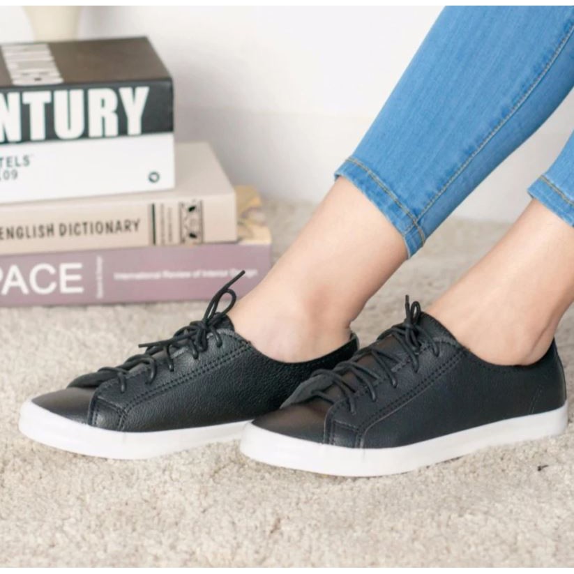 รองเท้า ผ้าใบแฟชั่นผู้หญิง รองเท้าหนังนุ่ม สีดำ สี ขาว ขายดี CC036