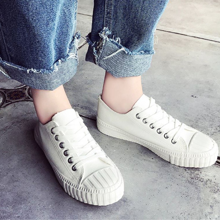 รองเท้า ผ้าใบผู้หญิง ผ้าใบ มีสามสี ดำ ฟ้า ขาว ถูก ชุดไปงานแต่ง ราคาถูก CT16