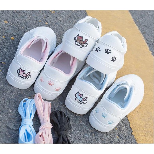 รองเท้า ผ้าใบหนังนิ่ม ปักแมว ด้านหลัง เชือก สินค้า DD&OO 2คู่ 2สี | P21