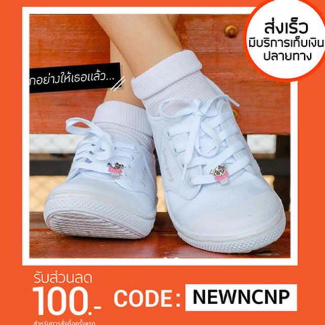 รองเท้าพละผูกเชือก girly-gang ผ้าใบ สี ขาว พละ รองเท้านักเรียน