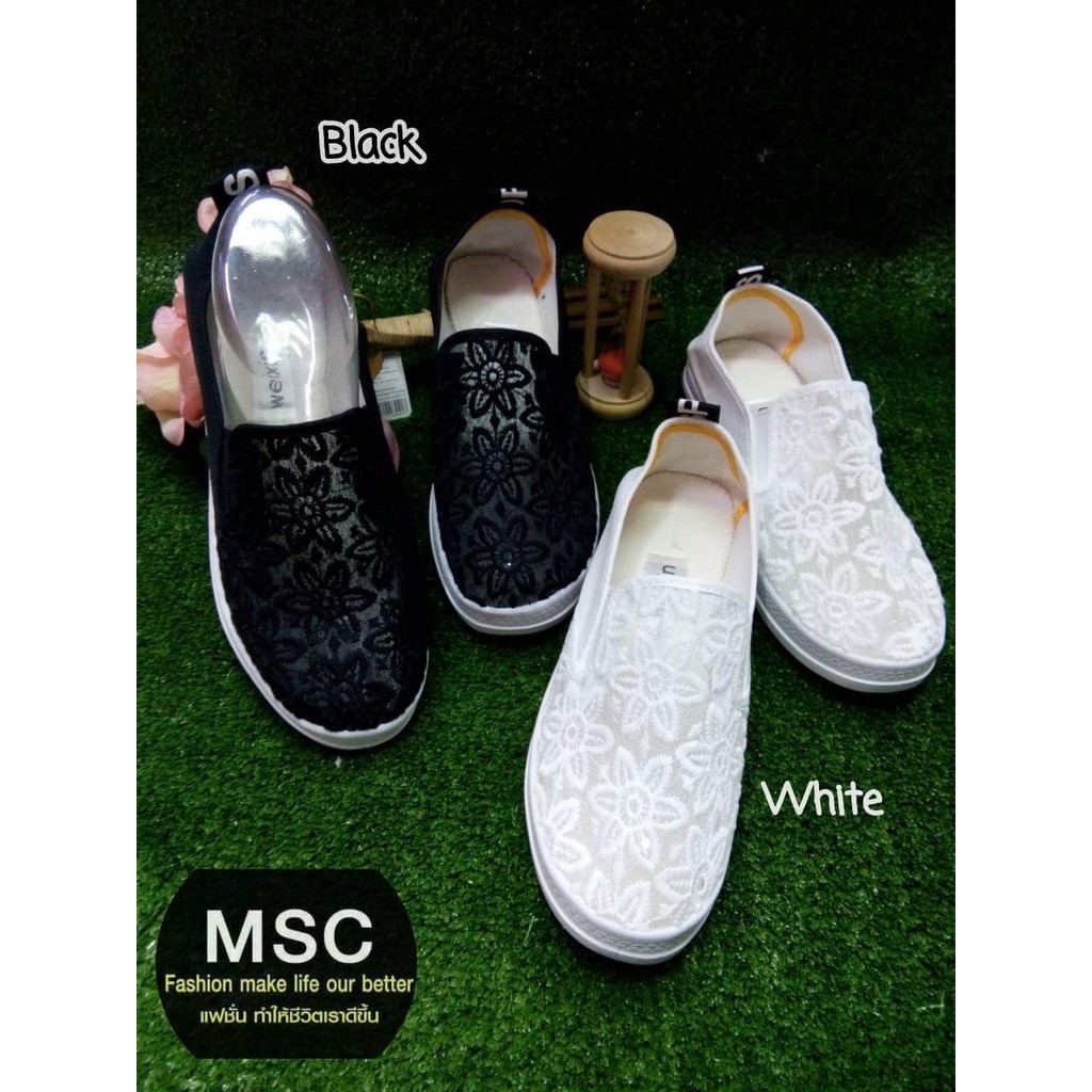 ผ้าใบลูกไม้ ทรงSlip-On WX
