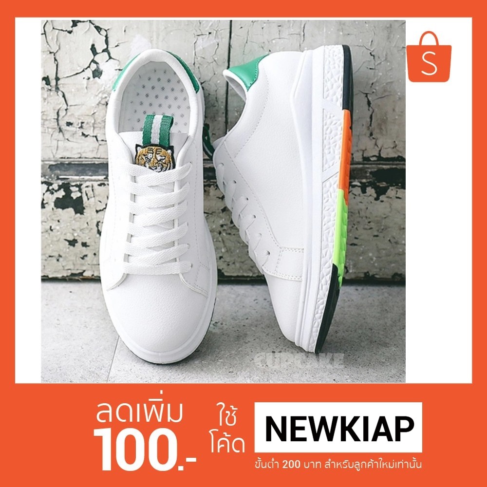 | 👟 พร้อมส่ง เท่เก๋น่ารัก รองเท้าผ้าใบเปิดส้นสีขาวหนังนิ่มส่งไว |