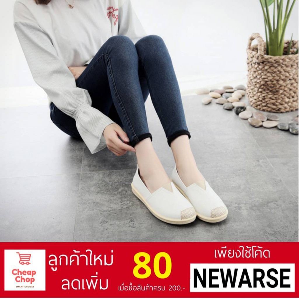 รองเท้าสลิปออนผู้หญิง สี ขาว-ดำ ชุดเดรสยาว นำเข้า ชุดไปงานแต่ง
