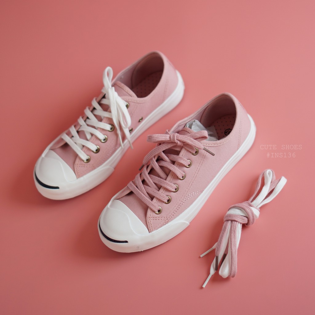 | สินค้า รองเท้า ได้เชือก น่ารักมาก ขาว+สีชมพู 2สีสี | INS136 EVENSTAR ผ้าใบหัวสีชมพู |