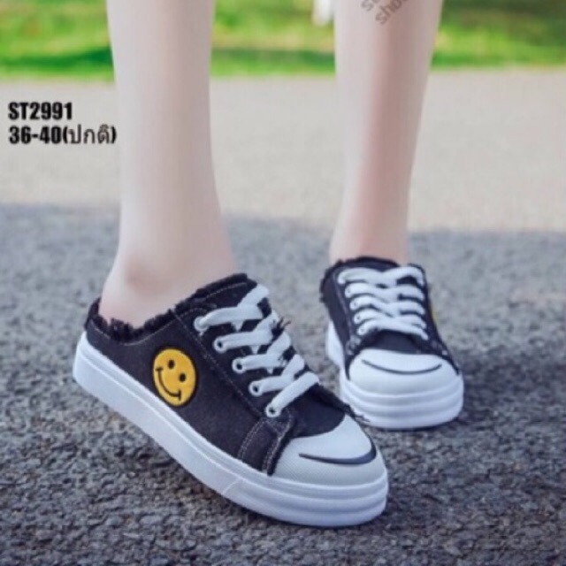 โค๊ด NEWRAHK ลดเพิ่ม 80฿ รองเท้า ผ้าใบเปิดส้น Smile น่ารักๆ