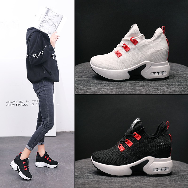 รองเท้า ผ้าใบแบบเสริมส้นsize3540รองเท้า ผ้าใบ รองเท้าส้นตึกและส้นเตารีด รองเท้าผู้หญิง แบบผูกเชือก สีดำ ขาว