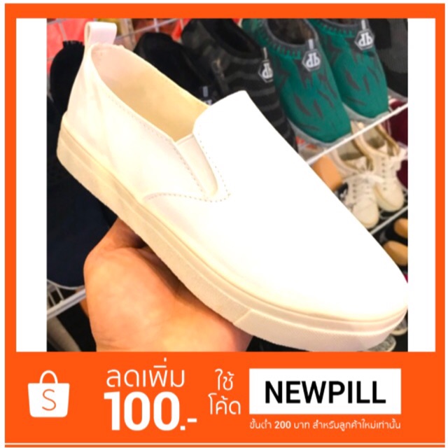 | ใส่สวย ขาวทรงสลิปออน รองเท้าสี สบาย เบา ผลิตจากวัสดุคุณภาพดี |