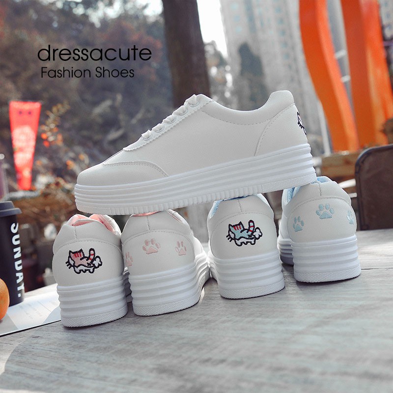 | ด้านหลัง เพิ่ม ไซส์ 1 พื้นรองเท้าสีล้วน ผ้าใบหนังนิ่ม ปักแมว จากปกติที่ใส่ 8283 รองเท้า |