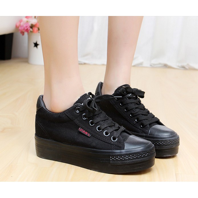 C185รองเท้า ผ้าใบเสริมส้น 35-40 ดำ,ดำล้วน, ขาว,น้ำเงิน,แดงส้นสูง6cmพรีออเดอร์ทักแชทก่อนสั่ง