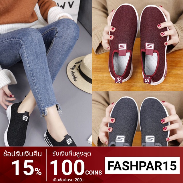 ถูกที่สุด มีบริการเก็บเงินปลายทาง รองเท้าแฟชั่นทรงสลิป-ออน พิเศษพร้อมถุง ผ้า + - S