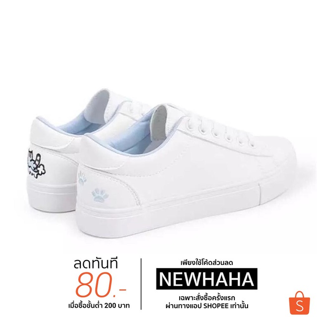 So-cute sneaker รองเท้า ผ้าใบสี ขาว ปักลายแมว