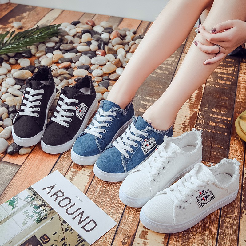 | ผ้าใบ รองเท้าสตรี รองเท้า สี ขาว แบน แฟชั่นเกาหลี ลำลอง 10422 |