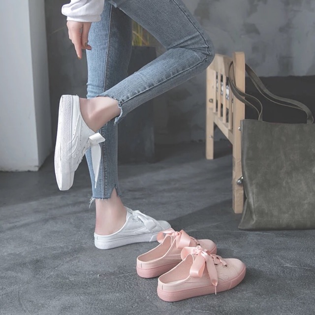 รองเท้าแฟชั่น รองเท้าผูกโบว์ รองเท้า ผ้าใบแบบสลิปออน