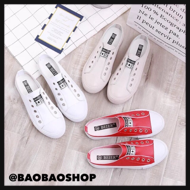 9038-Beige and-white รองเท้า ผ้าใบแฟชั่น เปิดส้น