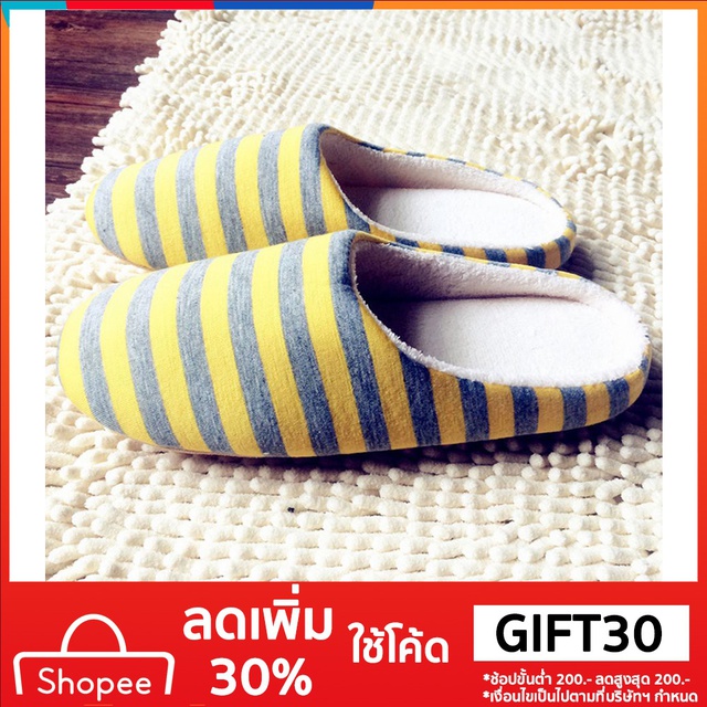| ความอบอุ่นในฤดูหนาวในร่ม ผ้ากำมะหยี่ที่อ่อนนุ่มพื้นในบ้านที่ มีการป้องกันการลื่นไถลรองเท้าแตะ ผ้าลายทาง |