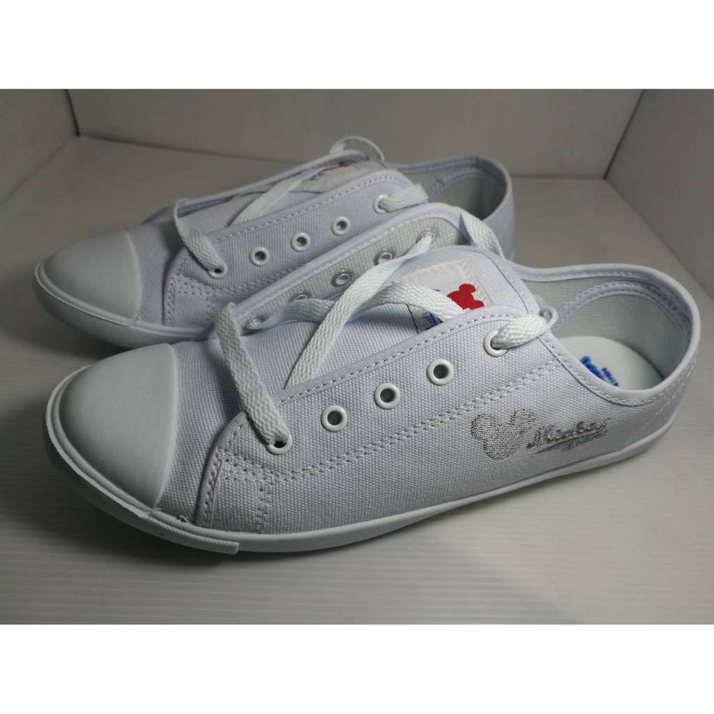 รองเท้า ผ้าใบ ขาวผูกเชือก ลายมิกกี้ นำเข้า ชุดแซก เสื้อเชิ้ต Adda-41H04