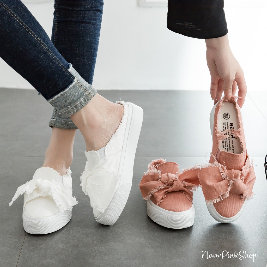 | BEIER [P28] สินค้าพร้อมส่ง | รองเท้าผ้าใบเปิดส้นโบว์ |