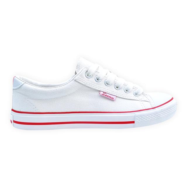 รองเท้า ผ้าใบแฟชั่น ทรง สี ขาวขีดแดง งานพรีเ มี่ยม พื้นนุ่ม Classic WHITE/RED LM999