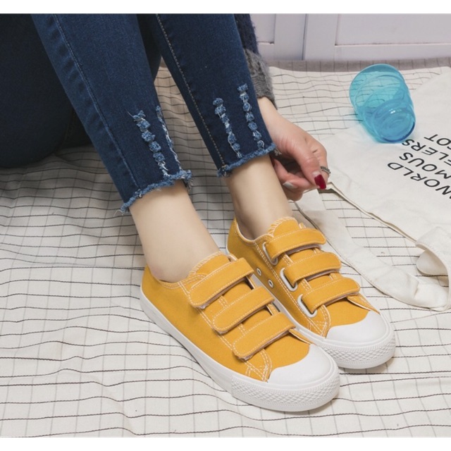 รองเท้า ผ้าใบแปะๆ สีมัสตาร์ด