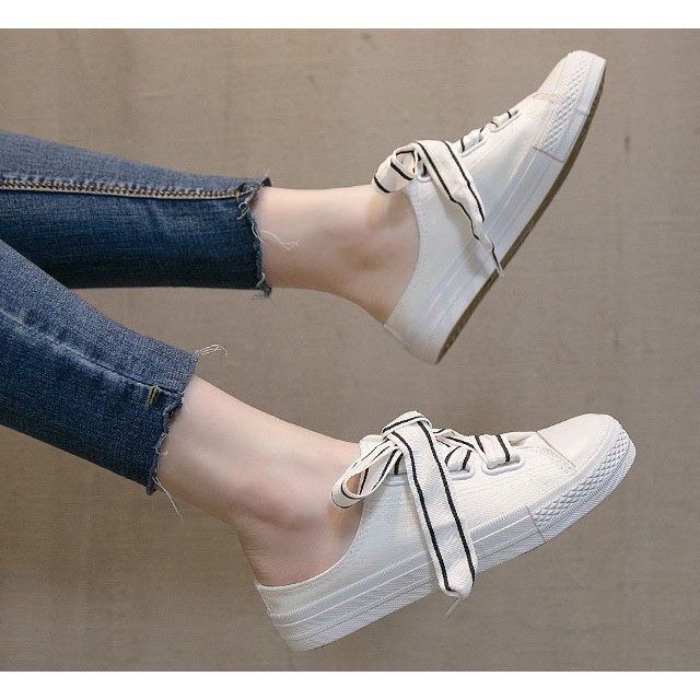 PRE-รองเท้า ผ้าใบเกาหลี ดีไซน์เชือกผูก แต่งขอบส้นเก๋ มี3สี ดำ+ ขาว+ชมพู