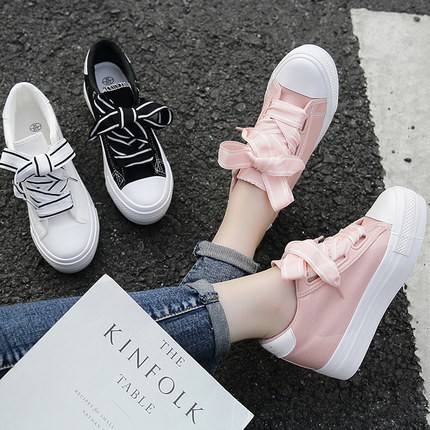 TB124 รองเท้า ผ้าใบ เสริมส้น 34-40 ขาว,ดำ,ชมพูส้นสูง6cm พรีออเดอร์ทักแชทก่อนสั่ง