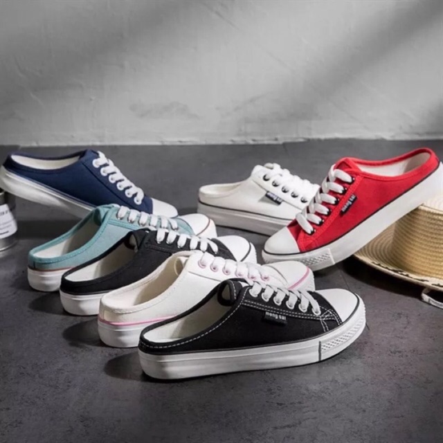 White / Black-shoe รองเท้า ผ้าใบเปิดส้น 9001
